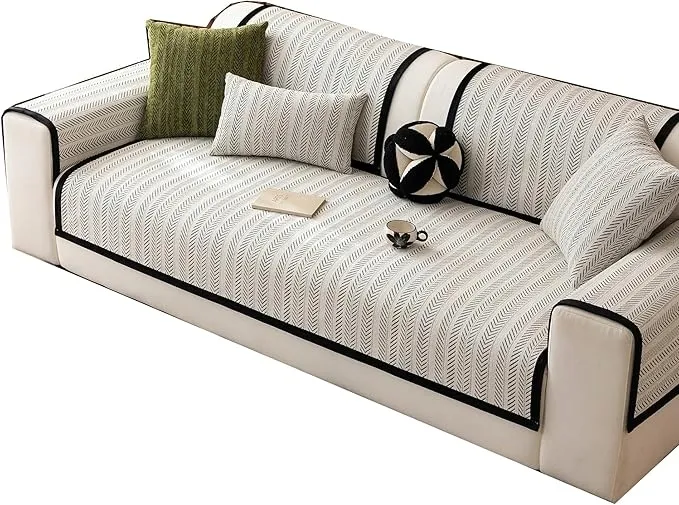 pokrowiec na sofę modułową w kształcie litery L, ochraniacz na meble, szenil, biały z czarnym, 70 x 180 cm