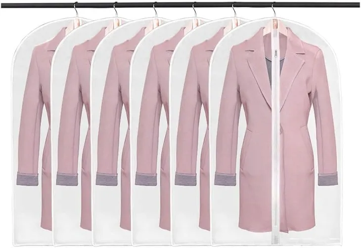 Przezroczyste pokrowce na ubrania i garnitury do szafy – zestaw 6 szt. Chronią odzież przed kurzem i zabrudzeniami, a przeźroczysta ścianka ułatwia szybkie rozpoznanie zawartości. Idealne do przechowywania sezonowego i porządkowania garderoby. Nowy produkt.