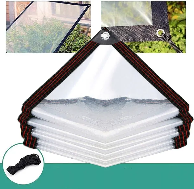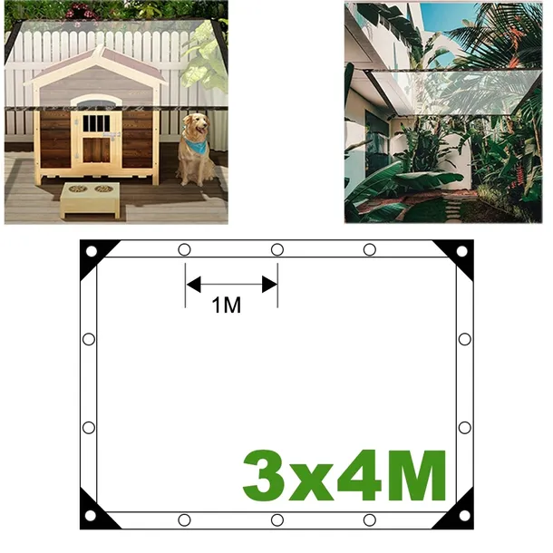 Materiał premium: Tkanina plandek wykonana jest z wysokiej jakości i wytrzymałej tkaniny polietylenowej. Przezroczysta plandeka jest wyposażona w praktyczne i wytrzymałe oczka ze stali nierdzewnej, dzięki czemu można ją łatwo zamocować.