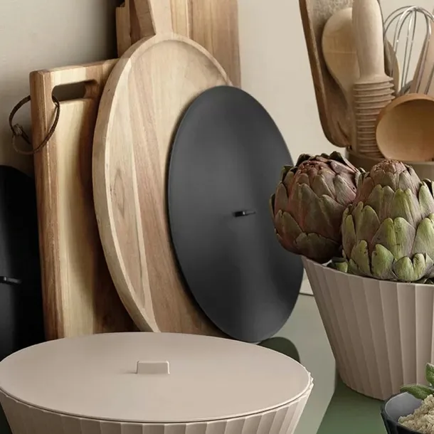 Pokrywki uzupełniają kolekcję Paestum, dzięki czemu miski Nettuno i Hera idealnie nadają się do przechowywania żywności w lodówce.
