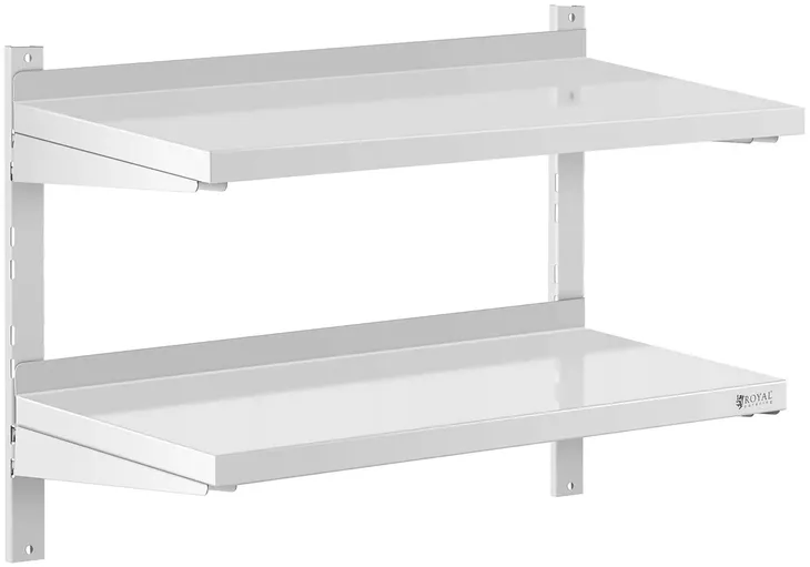 Wysokiej jakości półka wisząca Royal Catering to doskonały element wyposażenia profesjonalnej kuchni. Dwa blaty o szerokości 80 cm i głębokości 40 cm pozwolą zaoszczędzić dużo miejsca. Model RCWR-800.4 z pewnością posłuży przez wiele lat.