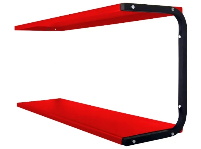 Półka Garażowa dodatkowa PG2D CRPółka dodatkowa PG2D CR do PG2 CR - idealna do przechowywania akcesoriów garażowych. Wykonana z blachy, polakierowana proszkowo na kolor czerwony mat. Struktura lakieru zapobiega ślizganiu się przedmiotów na półce. Zamocowana do ściany za pomocą dwóch giętych wsporników lakierowanych na kolor czarny. Dzięki zastosowaniu odpowiednich materiałów nasz produkt ma dużą wytrzymałość, posłuży wiele lat i zapewni porządek w garażu. Półka PG2D CR nie jest półką samodzielną. Do jej zamocowania wymagana jest półka PG2 CR.Zalety:mocowany do ściany na kołki rozporoweoszczędza miejsce w garażułatwy w montażu kołki montażowe w kpl.estetycznie wykonanywyrób polskiDane techniczne:szerokość użytkowa: 240 mmdługość użytkowa: 910 mm nośność: 60 kgwaga: 4.2 kgkolor: czarnyproducent: OBRAMET ...