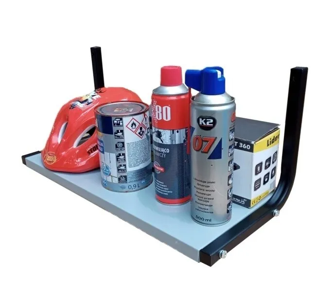 - Półka garażowa PG1MCS -Połka garażowa PG1MCS idealna do przechowywania akcesoriów garażowych ale i nie tylko. Nasza połka znajduje również zastosowanie w gastronomii, przemyśle, biurze czy szeroko rozumianym gospodarstwie domowym w tym w loftowych aranżacjach wnętrz. Wykonana z odpowiedniej grubości blachy polakierowana proszkowo na kolor srebrny mat. Dodatkowo struktura lakieru zapobiega ślizganiu się przedmiotów.Mocowana do ściany za pomocą dwóch wsporników w kolorze czarnym i dołączonego zestawu montażowego. Dzięki zastosowaniu odpowiednich materiałów nasz produkt cechuje się dużą wytrzymałością, odpornością na zarysowania a przy tym jest estetycznie wykonany.Posłuży wiele lat i zapewni porządek.- Zalety -✔ łatwa w montażu✔ zapewnia oszczędność miejsca i porządek✔ zestaw montażowy w komplecie✔ wysoka jakość w przystępnej cenie✔ sprawdzona bezpieczna konstrukcja o wysokiej nośności✔ bezawaryjność i funkcjonalność✔ estetycznie wykonana✔ solidna i wytrzymała✔ polski wyrób- Dane techniczne -✅Symbol: PG1MCS✅szerokość użytkowa: 24 cm✅długość użytkowa: 51 cm✅długość całkowita: 55 cm✅nośność: 40 kg✅waga: 2,5 kg✅kolor: srebrno-czarny mat✅producent: OBRAMET...