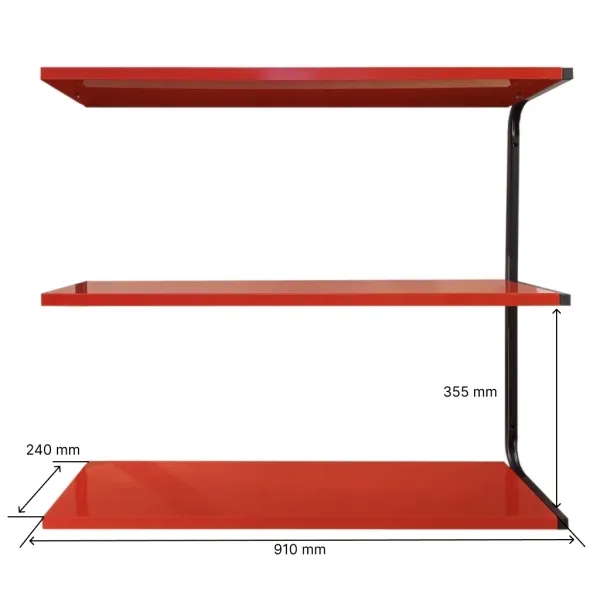 Półka Garażowa PG3D CRDodatkowa półka PG3D CR do półki PG3 CR lub PG3M CR to idealna do przechowywania akcesoriów garażowych. Wykonana z blachy polakierowana proszkowo na kolor czerwony. Struktura lakieru zapobiega ślizganiu się przedmiotów na półce. Zamocowana do ściany za pomocą dwóch giętych wsporników również lakierowanych na kolor czarny. Dzięki zastosowaniu odpowiednich materiałów nasz produkt ma dużą wytrzymałość posłuży wiele lat i zapewni porządek w garażu.Zalety:mocowana do ściany na kołki rozporoweoszczędza miejsce w garażułatwy w montażu kołki montażowe w kpl.estetycznie wykonanawyrób polskiDane techniczne:szerokość użytkowa: 3x240 mmdługość użytkowa: 3x910 mmnośność: 40 kgwaga: 4,9 kgkolor: czerwony, czarnyproducent: OBRAMET...