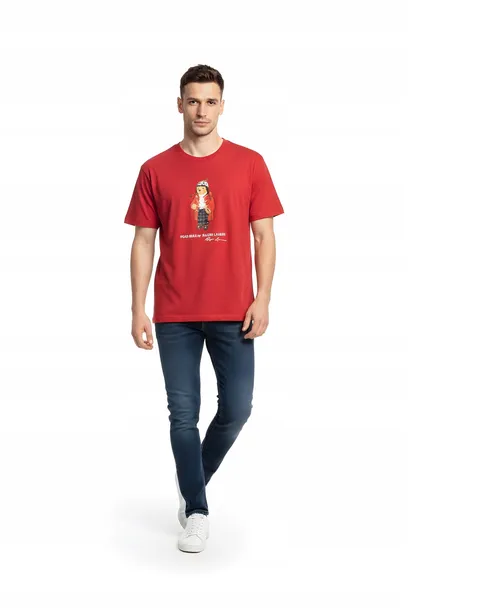 POLO RALPH LAUREN BEAR T-SHIRT MĘSKI czerwony z misiem rozmiar M