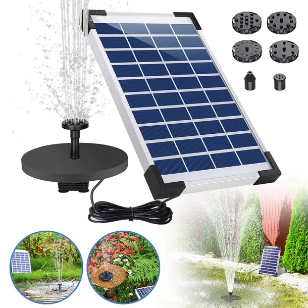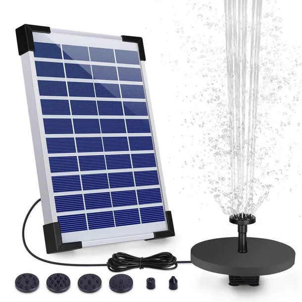 Pompa solarna do fontanny wodnej zwiększona do 5 W wysokiej jakości panele słoneczne, dzięki czemu pompa wodna może pracować nieprzerwanie i wydajniej.
