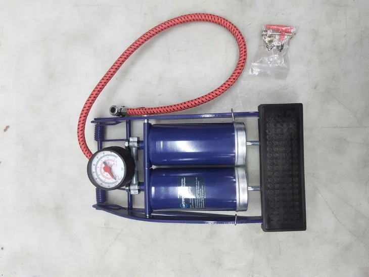 WIELOFUNKCYJNY: Akcesoria obejmują kilka adapterów do różnych zaworów. W ten sposób pompka nożna może być używana do wielu przedmiotów.