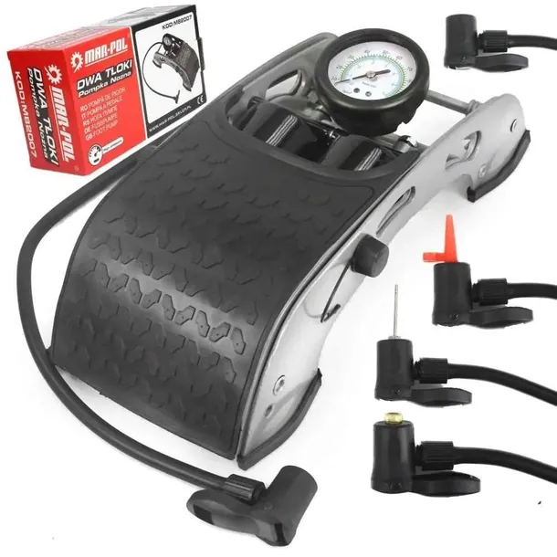 POMPKA NOŻNA DO ROWERU SAMOCHODU PIŁKI DO POMPOWANIA 2-TŁOKI MAR-POL