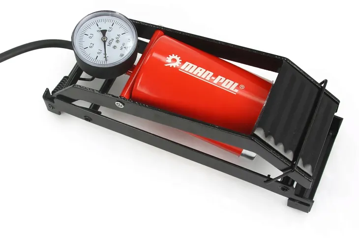 Pompka nożna z manometrem przeznaczona do pompowania samochodów, rowerów sprzętu sportowego i turystycznego.