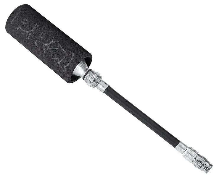 Zaprojektowana do sportowej jazdy pompka PRO Team CO2 to połączenie minipompki i regulatora CO2 w jednym kompaktowym urządzeniu. Odłączany przewód elastyczny z dwustronną głowicą do wentyli Presta/Schrader można odkręcić od minipompki i przykręcić do naboju CO2. Przewód można także podłączyć do pompki i używać jej jak standardowej minipompki. Ma korpus z anodowanego stopu aluminium o długości 19 cm oraz średnicy 2,5 cm i waży 145 g.