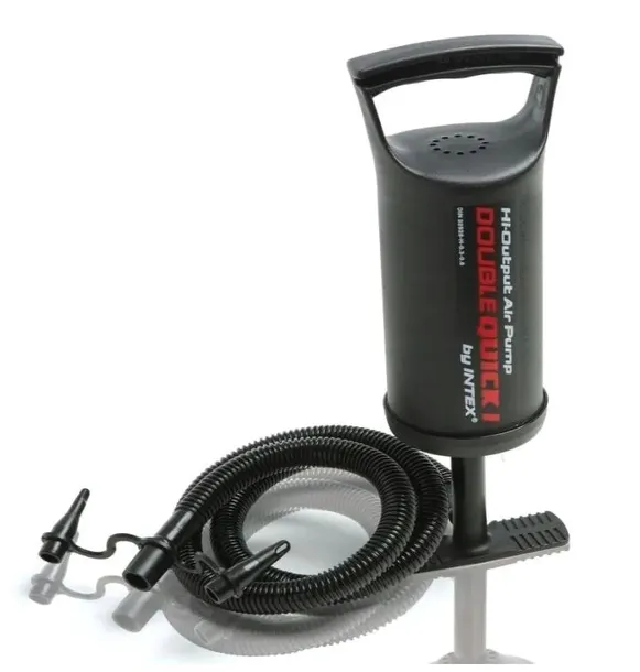 Dmuchane akcesoria do zabawy w wodzie błyskawicznie napompowane zostaną z pomocą praktycznej pompki ręcznej (małej) INTEX, która mimo małego rozmiaru zaskoczy niejedną osobę swoimi możliwościami. Pompka pozwala na wtłaczanie powietrza, pompowanie w obie strony. Z każdym kolejnym ruchem do wnętrzna dmuchanego akcesorium wtłaczane jest powietrze - dzięki temu czas pompowania zdecydowanie się skraca. Pompka wyposażona została w 3 uniwersale końcówki. Dzięki nim zachowania zostaje kompatybilność praktycznie ze wszystkimi dostępnymi na rynku dmuchanymi produktami.