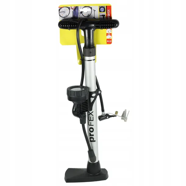 Pompka z manometrem. Wysokiej jakości pompka wykonana z aluminium. Bardzo duża wydajność pompowania. Ułatwia stabilne utrzymywane pozycji pompowania dzięki wystającej nóżce. Adapter pasuje do wszystkich rodzajów wentyli.