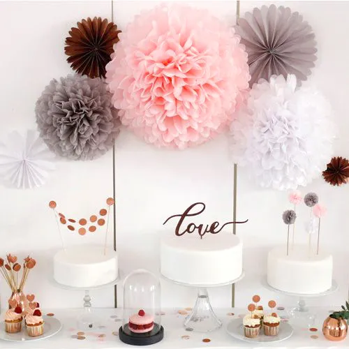 Pompon bibułowy w kolorze różowym, rozmiar 25 centymetrów.