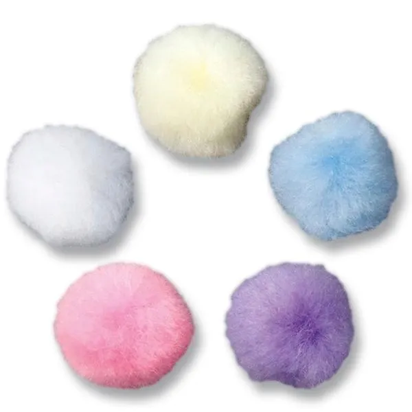 Pompony akrylowe 80szt. (O25mm) mix białe, waniliowe, różowe, wrzosowe, błękitne