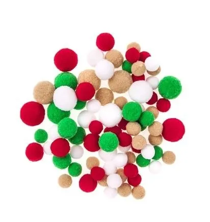 Puszyste, miękkie i miłe w dotyku pompony w różnych rozmiarach i tradycyjnych, świątecznych kolorach: białym, czerwonym, zielonym i beżowym. Doskonałe do kreatywnych projektów dla dzieci i dorosłych.