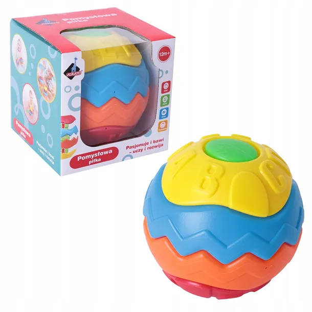 Piłka uczy kolorów, ćwiczy koncentrację ruchową i wzrokową, rozwija kreatywność i umiejętność układania.