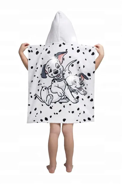 Urocze i praktyczne ponczo dla dzieci z motywem uroczych szczeniąt dalmatyńczyka ze znanej bajki Disneya zapewni szybkie i przyjemne osuszanie najmniejszych członków twojej rodziny. Idealnie nadaje się do użytku na plaży, przy basenie, po kąpieli lub lekcji pływania. Fason z kapturem sprawia, że jest wyjątkowo przytulne i pozwala dzieciom na swobodę ruchów podczas suszenia. Wykonane jest z bawełny, która jest super miękkim materiałem dla delikatnej skóry dziecka. Ten oryginalny dziecięcy ręcznik plażowy występuje w jednym rozmiarze, a jego wymiary to 50 x 115 cm.