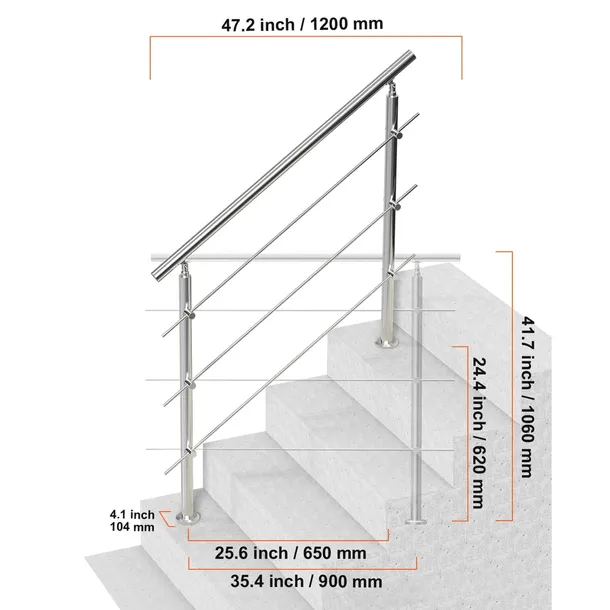 PORĘCZE SCHODOWE ZEWNĘTRZNE VEVOR 120CM 3 POPRZECZKI STAL NIERDZEWNA ZESTAW