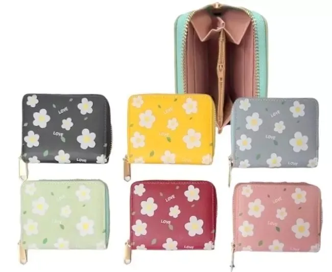 Odkryj naszą kolekcję uroczych portfeli z modnym wzorem w białe kwiatki i napisem "Love". Każdy portfel został zaprojektowany z myślą o praktyczności i stylu, oferując wygodne zamykanie na zamek błyskawiczny. Dostępne w 6 atrakcyjnych kolorach: czarnym, żółtym, niebieskoszarym, jasnozielonym, bordowym i różowym, pozwalają na swobodny wybór i dopasowanie do indywidualnych preferencji. Idealne do przechowywania monet, banknotów i kart. Oferujemy je w opakowaniach zbiorczych zawierających 12 sztuk, co sprawia, że są doskonałym wyborem zarówno dla indywidualnych klientów, jak i dla sklepów. Podana cena dotyczy jednej sztuki.