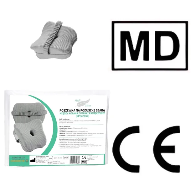 POSZEWJA NA PODUSZKĘ ORTOPEDYCZNĄ KOLANOWĄ MIĘDZY NOGI MEMORY MEDI SLEEP W KOLORZE SZARYM