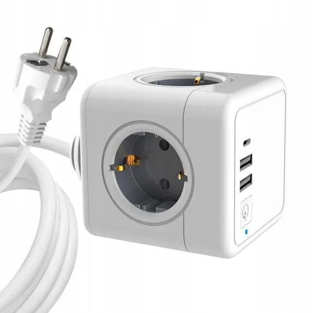 4 gniazda Schuko, 2 porty USB A, 1 port USB-C, kostka zasilająca z kablem 1,5 m, biała