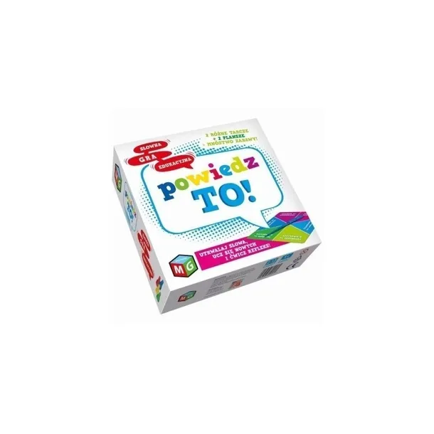 Słowo na "L"! Czasownik na samogłoskę! Czy potrafisz je wymienić w ciągu sekundy lub dwóch? Czas ucieka, więc musisz się pospieszyć. "Powiedz TO!" jest językową grą edukacyjną. Grając w nią, dzieci utrwalają i powiększają swoją wiedzę związaną ze słowami zaczynającymi się na konkretne litery.Trenują też znajomość części mowy. Rozgrywka dostarcza masę zabawy, pomaga w treningu refleksu i koncentracji. Zawartość pudełka: dwustronna plansza, 12 plastikowych pionków, pionek chmurka "Powiedz TO!", podstawka do pionka, bączek, 2 tarcze, 2 wskazówki, instrukcja.
