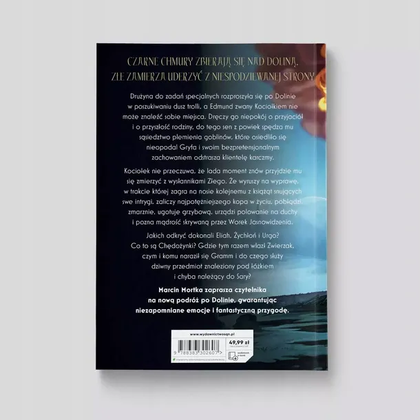 Czarne chmury zbierają się nad Doliną. Złe zamierza uderzyć z niespodziewanej strony Drużyna do zadań specjalnych rozproszyła się po Dolinie w poszukiwaniu dusz trolli, a Edmund zwany Kociołkiem nie może znaleźć sobie miejsca. Dręczy go niepokój o przyjaciół i o przyszłość rodziny, do tego sen z powiek spędza mu sąsiedztwo plemienia goblinów, które osiedliło się nieopodal Gryfa i swoim bezpretensjonalnym zachowaniem odstrasza klientelę karczmy. Kociołek nie przeczuwa, że lada moment znów przyjdzie mu się zmierzyć z wysłannikami Złego. Że wyruszy na wyprawę, w trakcie której zagra na nosie kolejnemu z książąt snujących swe intrygi, zaliczy najpotężniejszego kopa w życiu, pobłądzi, zmarznie, ugotuje grzybową, urządzi polowanie na duchy i pozna mądrość skrywaną przez Worek Jasnowidzenia. Jakich odkryć dokonali Eliah, Żychłoń i Urgo? Co to są Chędożynki? Dlaczego Zwierzak dał się zamknąć w klatce, czym Gramm naraził się pewnemu olbrzymowi i do czego służy dziwny przedmiot znaleziony pod łóżkiem i chyba należący do Sary? Marcin Mortka zaprasza czytelnika na nową podróż po Dolinie, gwarantując niezapomniane emocje i fantastyczną przygodę.