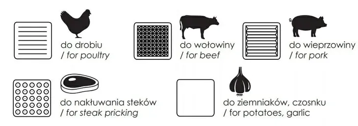 Jedyny w swoim rodzaju, zaprojektowany i wyprodukowany przez nas w POLSCE - tłuczek, który powstał z myślą o najbardziej wymagających klientach. Idealny do rozbijania różnego rodzaju mięs - tłuczek pomaga przygotować mięso do dalszej obróbki Wielofunkcyjny, pięciostronny - gładka powierzchnia znajdująca się na główce tłuczka posłuży do rozgniatania orzechów, czosnku oraz ziemniaków Bardzo trwały i solidny - narzędzie posłuży w kuchni przez długie lata Estetyczny wygląd - tłuczek zaskakuje designem i wyjątkowo dobrze się prezentuje Lekki i poręczny - tłuczek jest idealnie wyważony, przy użytkowaniu nie odczuwamy ciężaru w ręce