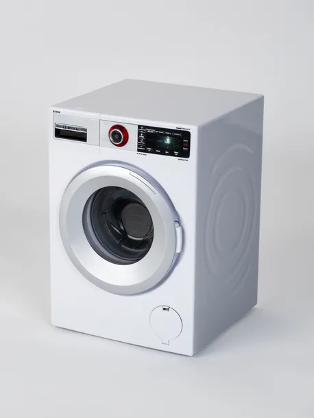 Pralka powstała na licencji firmy Bosch, dlatego też jest wierną kopią prawdziwego urządzenia tej marki. Pralka, która nie tylko wygląda jak prawdziwa, ale także naprawdę pierze!!! Zabawka działa zarówno „na sucho”, jak i z wodą. Urządzenie posiada obracający się bęben oraz funkcję napełniania wodą i odprowadzania wody, a można ją obsługiwać zarówno na baterie, jak i za pomocą ręcznej korbki. Drzwiczki pralki otwierane są ręcznie za pomocą przycisku na ich obudowie. Pralka ma zaprogramowane 4 cykle prania: nabieranie wody, pranie, wirowanie i odprowadzanie wody. Każdy z programu można uruchomić osobno przez naciśnięcie odpowiednio przypisanego przycisku „water in”- „wash”- „spin” -„water out” na obudowie pralki, lub też włączyć kompletny program prania za pomocą przycisku „play/pause”. Okrągły programator „ON” podczas obracania wydaje terkoczący mechaniczny dźwięk, posiada kontrolne czerwone podświetlenie LED, a także po włączeniu inicjuje podświetlenie wyświetlacza, co dodatkowo potęguje realistyczny wygląd pralki. Bęben obraca się lub nie w zależności od cyklu prania. Wodę do pralki wlewa się przez szufladkę umieszczoną w przednim panelu, a odprowadzenie wody następuje przez wężyk znajdujący się z tyłu urządzenia. Na białej obudowie pralki poniżej bębna znajduje się mała okrągła klapka imitująca filtr urządzenia. Do bębna zmieści się z powodzeniem ubranko dla lalki. Dodatkowo pralka wydaje kilka realistycznych dźwięków odpowiednio dla poszczególnych cyklów prania. Zabawkowa pralka z realistycznymi funkcjami pozwoli dzieciom na naśladowanie rodziców podczas wykonywania jednej z codziennych czynności, a wszystko to odbywa się w bezpiecznych warunkach, pozwalających na beztroską zabawę. Zabawka wymaga użycia baterii, które nie są zawarte w zestawie. Specyfikacja: Produkt jest zabawką Zabawka przeznaczona dla dzieci powyżej 3. roku życia Waga : 1,55 kg Wymiary opakowania : 23.0x20.0x28.0 cm Ilość w opakowaniu zbiorczym : 4 Wymagane baterie: 3 x R14 Kraj pochodzenia : Chiny Kolekcja akcesoriów AGD na licencjach Bosch, Electrolux, Miele, jest jedną z wiodących kolekcją marki Klein. Nie sposób wyobrazić sobie zabawki bardziej przypominające prawdziwe sprzęty służące dorosłym w każdym domu. Szeroki wybór kolorystyki powoduje, że sprzęt dużego AGD, a w tym pralki, odkurzacze, czy całe kuchnie nadają się równie dobrze dla dziewczynek jak i dla chłopców. Podczas zabawy dzieci mogą naśladować zaobserwowane w świecie dorosłych wszystkie domowe sytuacje, jak pranie, gotowanie czy sprzątanie. Marka Klein znana jest na świecie z produktów wykonanych z dbałością o szczegóły, z najlepszej jakości materiałów oraz atrakcyjnego wzornictwa. Zabawki tej marki idealnie trafiają w gusta małych i większych użytkowników. Artykuły oznaczone marką Klein gwarantują świetną zabawę oraz odznaczają się długą żywotnością.