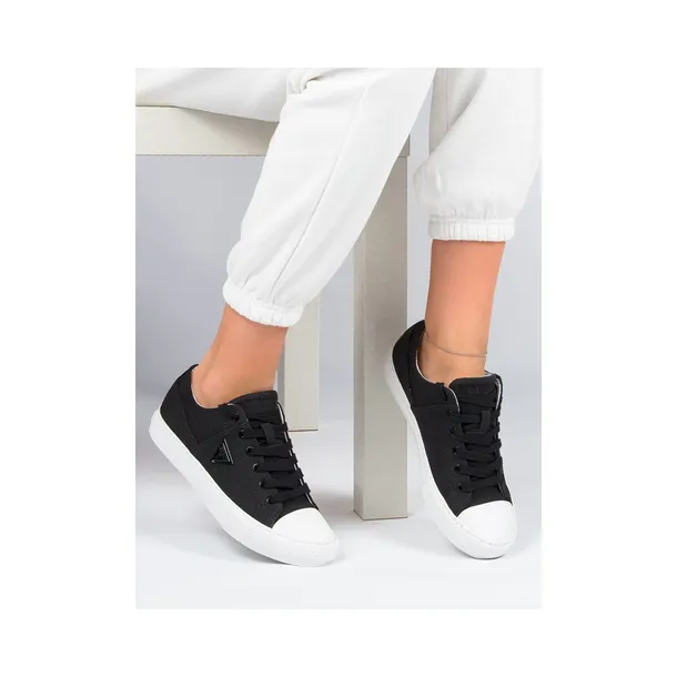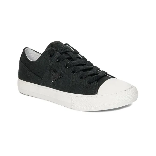 Guess to jedna z najbardziej rozpoznawalnych marek na świecie. Oferta marki jest skierowana do osób, które cenią sobie niezależność, są odważne i nie boją się modowych wyzwań. Prezentujemy najnowszą propozycję tej znakomitej marki, klasyczne, niskie, wiązane trampki damskie. Cholewka wykonana z wysokiej jakości tkaniny w kolorze czarnym. Model sznurowany, z okrągłym białym noskiem. Gruba, biała podeszwą w wysokości 2,5 doskonale izoluje od podłoża i jest antypoślizgowa. Ten model to bez wątpienia ponadczasowa klasyka. Stylizacje z ich wykorzystaniem nabiorą, nowego, wyjątkowego charakteru.