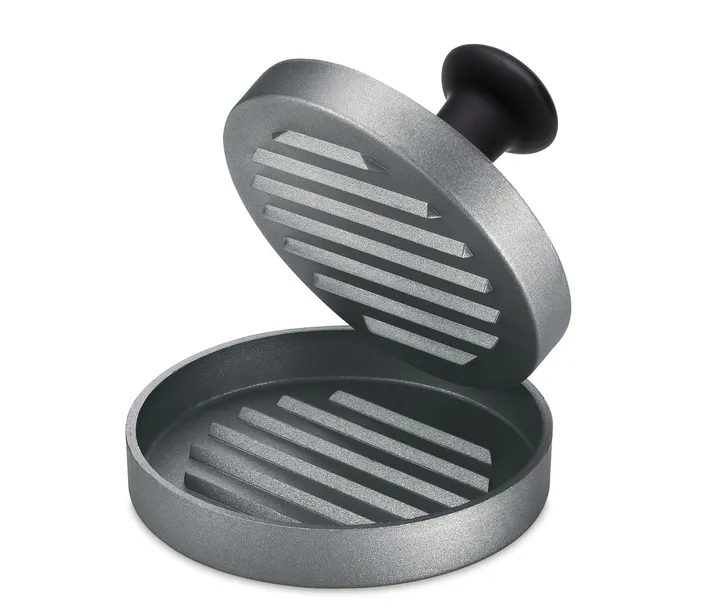 Zrobienie domowych kotlecików umożliwi prasa do hamburgerów Küchenprofi wykonana z aluminium. Wystarczy nałożyć do niej porcję mięsa i przycisnąć pokrywką z uchwytem. W taki sposób można też przygotować kotlety mielone.