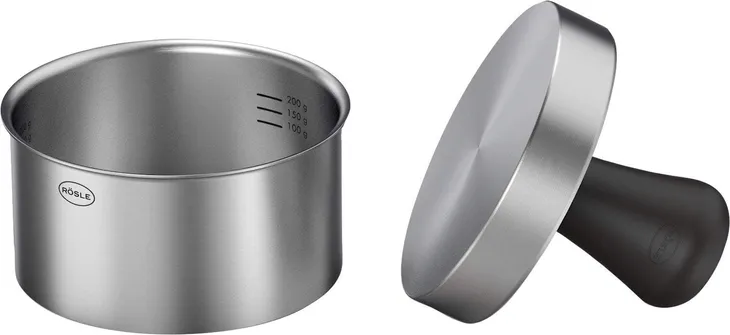 Jedna z najbardziej popularnych potraw w ogóle: pyszne hamburgery. Niezależnie od tego, czy smażone czy z grilla – ważne jest precyzyjne kształtowanie. Aby ułatwić formowanie burgerów, firma RÖSLE zaprojektowała tę praktyczną formę do pieczenia burgerów ze stali nierdzewnej.
