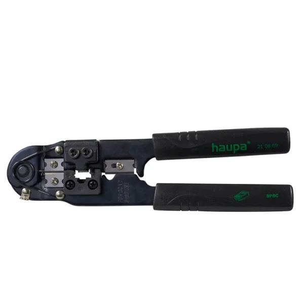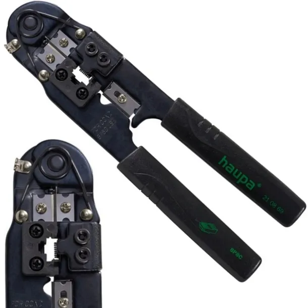 Praska ręczna HAUPA 210869 to profesjonalne narzędzie przeznaczone do zaciskania nieekranowanych wtyków modułowych RJ typu Western. Wyposażona w funkcję ściągania izolacji oraz cięcia, zapewnia wygodę i precyzję pracy. Solidna konstrukcja i ergonomiczny uchwyt gwarantują trwałość oraz komfort użytkowania. Zaciskarka obsługuje wtyki RJ, BNC, D-Sub, F, F-kompresyjny, LSA-Plus, słaboprądowy, ST, S.C., SMA, LC oraz MT-RJ, dzięki czemu jest wszechstronnym narzędziem, idealnym do różnych zastosowań telekomunikacyjnych i sieciowych.