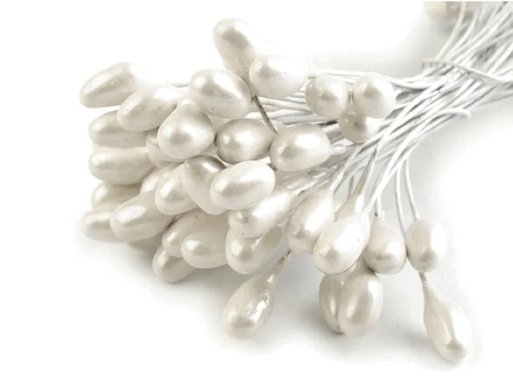 Zastosowanie: Pręciki można wkomponować w środki żywych i sztucznych kwiatów lub do wieńców. Perfekcyjnie będą się wyróżniać w kwiatkach stworzonych farbami do szkła, metodą twist artu czy quillingu. Są świetne także do broszek z różami na suknie ślubne.