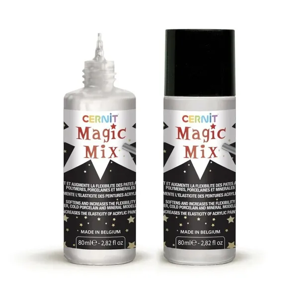 Preparat Cernit Magic Mix 80 mlPreparat Cernit Magic Mix zmiękcza i poprawia elastyczność modeliny, glinki ceramicznej i mineralnej oraz farb akrylowych.