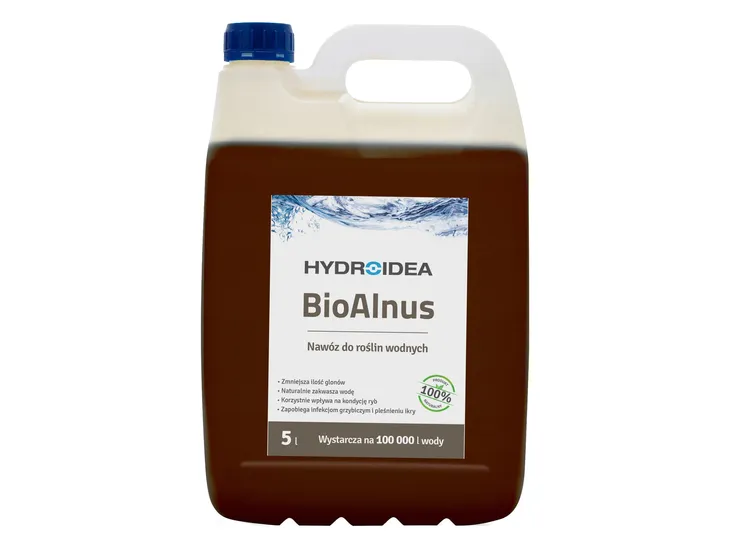 W swoim składzie zawiera związki humusowe garbniki, które naturalny sposób lekko zakwaszają wodę. Klaruje i oczyszcza wodę, zmniejsza ilość glonów. Stosowanie preparatu BioAlnus daje możliwość rozwoju pożytecznych bakterii i wpływa na zachowanie równowagi biologicznej zbiornika. Zapobiega rozwojowi chorób grzybowych i wpływa pozytywnie na kondycje ryb, zmniejszając jednocześnie ryzyko infekcji grzybiczych i pleśnieniu ikry. Preparat pozyskiwany w 100 % z naturalnych produktów – szyszek olchy pochodzących z ekologicznych rejonów. Do zastosowania w: oczkach wodnych i stawach kąpielowych z rybami, akwariach słodkowodnych, czarnych wodach „black water”.