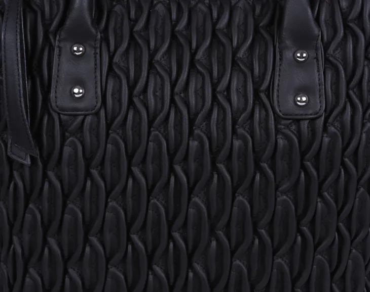 Torebka wykonana jest z grubej, usztywnianej skóry ekologicznej.