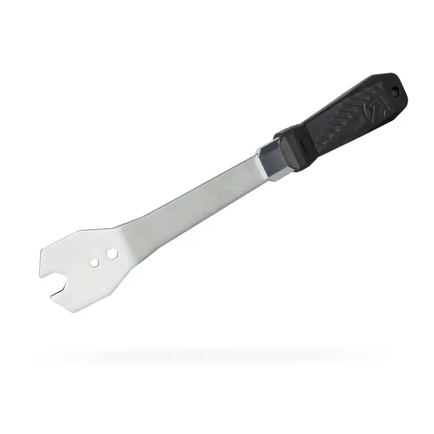 Klucz do pedałów PRO Team został opracowany z myślą o łatwej obsłudze podczas zawodów sportowych. Ma ergonomiczny uchwyt wykonany z dwóch materiałów na końcu dłuższej (w porównaniu ze standardowym kluczem do pedałów PRO) rękojeści wyposażonej w aluminiową tuleję zwiększającą sztywność. Gniazda 15, 6 i 8 mm klucza do pedałów Team są wycinane laserowo w celu uzyskania odpowiedniej precyzji, co gwarantuje, że to bardzo wytrzymałe narzędzie z hartowanej stali nie uszkodzi pedałów.