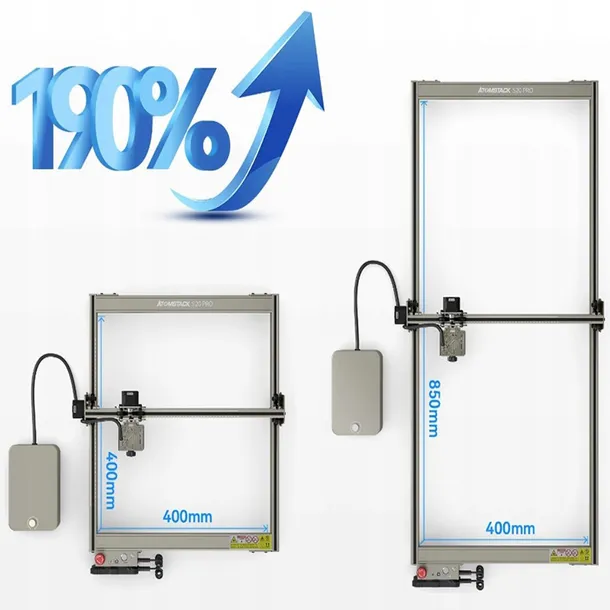 - Szybka rozbudowa obszaru grawerowania Atomstack X20 Pro w przystępnej cenie: Dzięki wymianie osi ramy X20 Pro można łatwo uzyskać duży obszar grawerowania 410x850 mm, co odpowiada potrzebom użytkowników grawerujących na dużych powierzchniach.