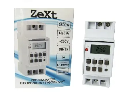 Kompaktowa konstrukcja i montaż na szynie DIN 35 sprawiają, że instalacja tego programatora jest prosta i wygodna. Intuicyjna obsługa oraz czytelny wyświetlacz LCD zapewniają pełną kontrolę nad ustawieniami.