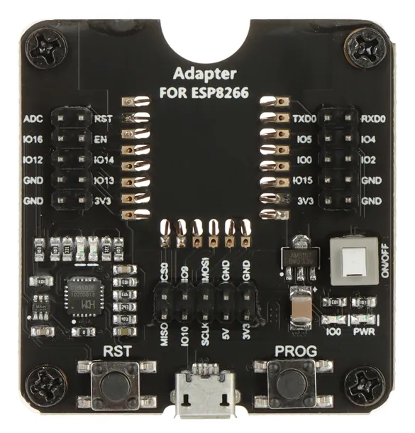 Programator ESP8266 jest urządzeniem pośredniczącym w wymianie danych pomiędzy komputerem (port USB), a modułami opartymi na chipie ESP8266. Programator umożliwia np. zapisanie własnego programu w pamięci przyłączonego kontrolera, lub komunikację komputera z modułem za pomocą portu USB. Interfejs został wyposażony w dedykowane miejsce na płytkę, otoczone sprężynującymi pinami. Takie rozwiązanie zapewnia odpowiednie połączenie pinów modułu z wyprowadzonymi złączami goldpin, przy okazji pozwalając na pewny, tymczasowy montaż programowanego modułu. Dodatkowym ułatwieniem przy programowaniu i testowaniu modułu są przyciski funkcyjne, dzięki którym nie ma potrzeby manualnego zwierania odpowiednich pinów modułu. Urządzenie jest w pełni kompatybilne z powszechnie używanymi środowiskami programistycznymi: Arduino IDE, ESP8266Flasher oraz Espressif FLASH_DOWNLOAD_TOOLS. W zależności od użytkowanego systemu operacyjnego, do poprawnego działania interfejsu może być wymagana instalacja odpowiednich sterowników. Programator jest zasilany z portu USB i nie wymaga zewnętrznego zasilania.