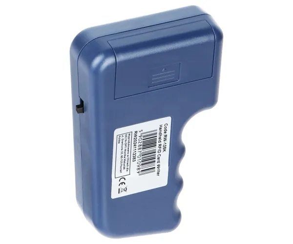RW-125K służy do programowania (kopiowania) kart, breloków oraz tagów RFID; Standard: Unique EM 125kHz ; Kompatybilność: EM41xx ; Zasięg odczytu kart: max. 10 cm ; Zasilanie bateryjne: 2 x bateria alkaliczna AAA ;