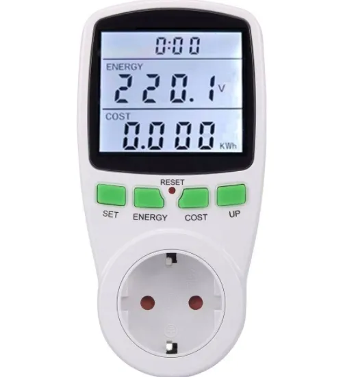 Wielofunkcyjne gniazdo, które automatycznie oblicza rachunek za prąd, mierzy zużycie energii, napięcie, prąd i czas.