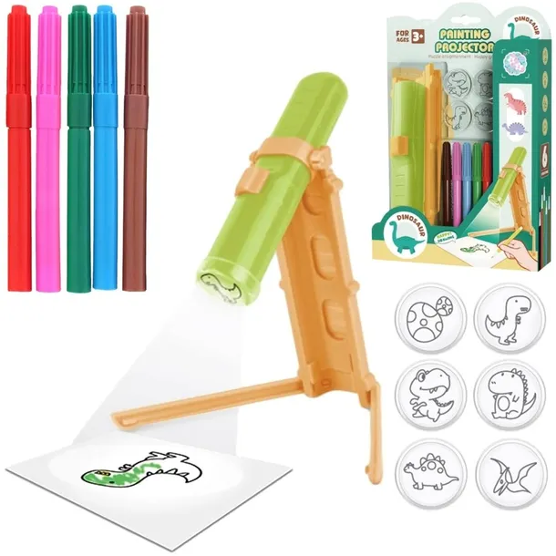 produktu: Projektor Do Rysowania "Dinosaur Painting Projector" - Ze Slajdami i MazakamiKrótki opis: Rozwiń kreatywność swojego dziecka z projektorem do rysowania "Dinosaur Painting Projector"! Ten wspaniały zestaw pozwala łatwo odwzorowywać ulubione dinozaury i inne wzory. To idealna zabawka, która rozwija zdolności artystyczne i manualne, a do tego dostarcza mnóstwo frajdy!Długi opis: Wprowadź swoje dziecko w świat rysowania i kreatywnej zabawy z innowacyjnym projektorem "Dinosaur Painting Projector"! Ten fantastyczny zestaw to doskonałe narzędzie dla małych artystów, którzy uwielbiają tworzyć i eksperymentować. Dzięki niemu, odwzorowywanie ulubionych dinozaurów i innych kształtów staje się niezwykle proste i przyjemne, co zachęca do rozwijania pasji do rysowania.Główne cechy:Łatwe rysowanie z projekcją: Projektor wyświetla wyraźny obrazek na papierze, który dziecko może łatwo obrysować, a następnie pokolorować. To idealne rozwiązanie dla początkujących artystów!Motywy dinozaurów: Zestaw zawiera slajdy z uroczymi i różnorodnymi dinozaurami oraz innymi zabawnymi wzorami, które z pewnością zachwycą każdego malucha.Wielokolorowe mazaki: Dołączone do zestawu mazaki w żywych kolorach (czerwony, czarny, żółty zielony, niebieski, brązowy) pozwalają na natychmiastowe kolorowanie i ożywianie rysunków.Rozwój umiejętności: Zabawka doskonale rozwija zdolności manualne, koordynację wzrokowo-ruchową, precyzję, kreatywność oraz wyobraźnię.Łatwa obsługa: Projektor jest prosty w montażu i obsłudze, a jego składana konstrukcja ułatwia przechowywanie.Przenośny design: Kompaktowe rozmiary sprawiają, że projektor można łatwo zabrać ze sobą w podróż czy do przyjaciół.Bezpieczeństwo: Produkt przeznaczony dla dzieci od 3 roku życia, wykonany z bezpiecznych materiałów.Specyfikacja:Wiek: 3+Materiał: Plastik, papierZasilanie projektora: Baterie (brak w zestawie)Wielkość opakowania: 16x23x4Zawartość zestawu:Projektor do rysowania z podstawąZestaw slajdów z wzorami dinozaurówZestaw kolorowych mazaków (6 szt.)