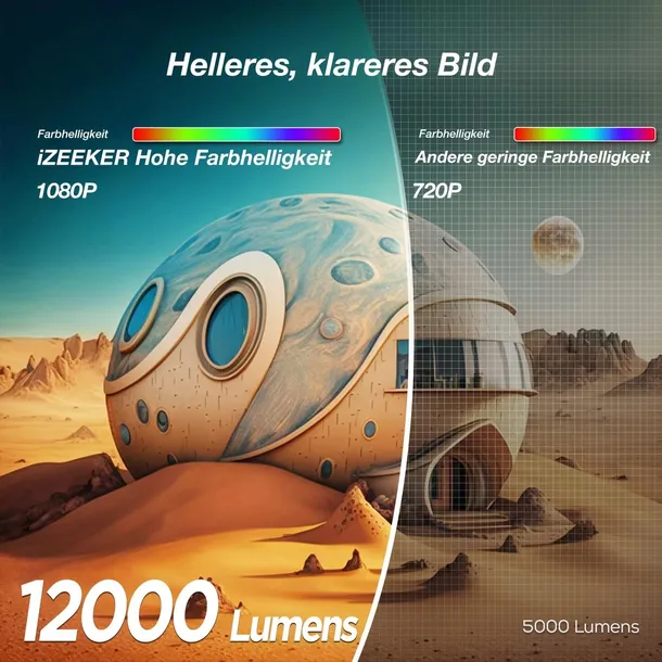 - Opis produktu: Projektor wideo Bluetooth, projektor 12000 lumenów 1080P, przenośny mini projektor iZEEKER Kino domowe dla systemu iOS Android PC PS5 HDMI USB Firestick (ze statywem)