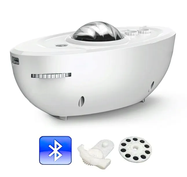 Projektor MUSICMATE Sky Galaxy to urządzenie, które sprawi, że Twoje przestrzenie nabiorą zupełnie nowego życia. Dzięki mocy lasera wynoszącej 30mW o długości fali 515nm, oraz trzem diodom LED o łącznej mocy 3W (czerwona: 1W, zielona: 1W, niebieska: 1W), ten projektor tworzy niepowtarzalne efekty świetlne. Od gwiazd i księżyca po meteory, chmury i planety – pozwala na stworzenie magicznego nieba w każdej przestrzeni.
