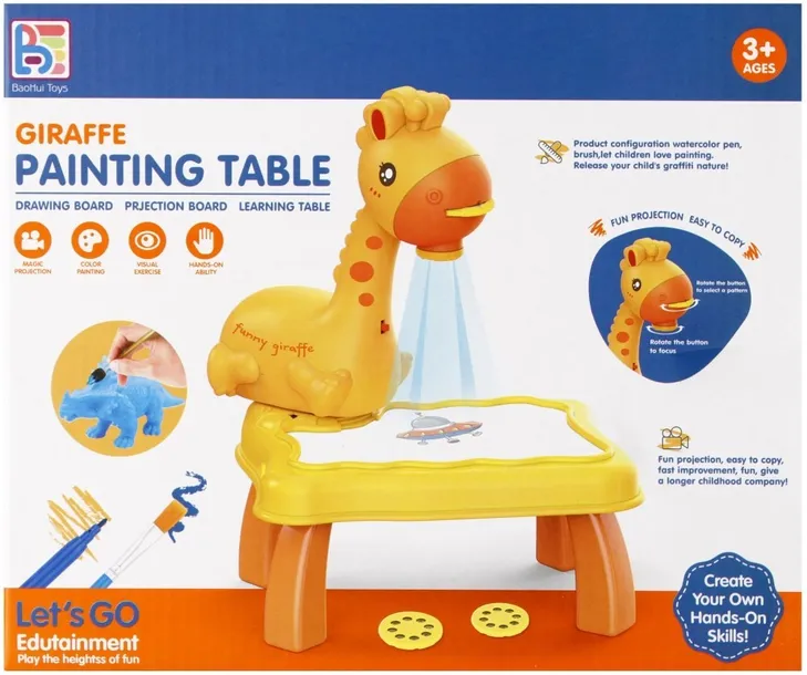 Projektor do rysowania posiada efekty dźwiękowe oraz świetlne, pobudza i rozwija wyobraźnię dziecka, zdolności manualne, kreatywność oraz wymyślanie nowych idei, koncepcji lub skojarzeń. MEGA CREATIVE Stolik projektor może uprzyjemnić Twojemu dziecku wspólną zabawę z rodzeństwem, przyjaciółmi a także umili wasz wspólnie spędzony czas, jeśli tylko skusisz się na wspólną zabawę ze swoją pociechą. Zawartość zestawu Stolik projektor, kpl. pisaków w 4 kolorach, 3x rzutnik z szablonami do wyświetlania, notes.