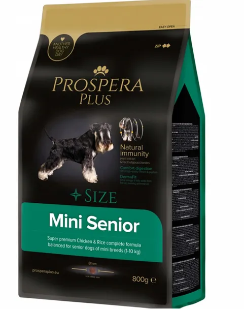 PROSPERA PLUS Mini Senior to karma premium bogata w wysokiej jakości i lekkostrawne mięso z kurczaka. Formuła jest dostosowana do zmieniających się wymagań żywieniowych i fizjologicznych starszych psów ras małych i karłowatych. Składniki zawarte w przepisie, fruktooligosacharydy i ekstrakt drożdżowy, wzmacniają odporność Twojego psa. Naturalne kwasy tłuszczowe Omega 3 z oleju rybiego wraz z olejem z wiesiołka przyczyniają się do zdrowej sierści i pięknej skóry.