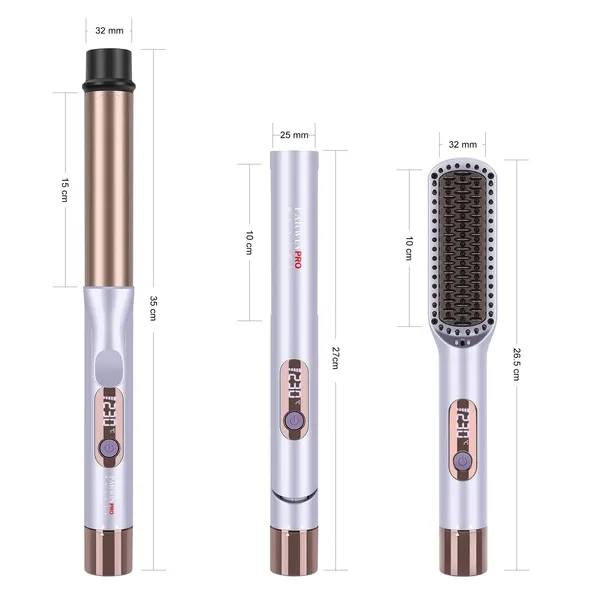 - 【Zestaw do stylizacji 3 w 1 i idealny prezent】 --- Ten zestaw do stylizacji włosów 3 w 1 zawiera prostownicę do włosów (25 mm), lokówkę 32 mm i szczotkę do prostowania włosów. Dzięki odłączanemu przewodowi zasilającemu pojedynczy przewód zasilający może kontrolować trzy urządzenia, oszczędzając dużo miejsca.