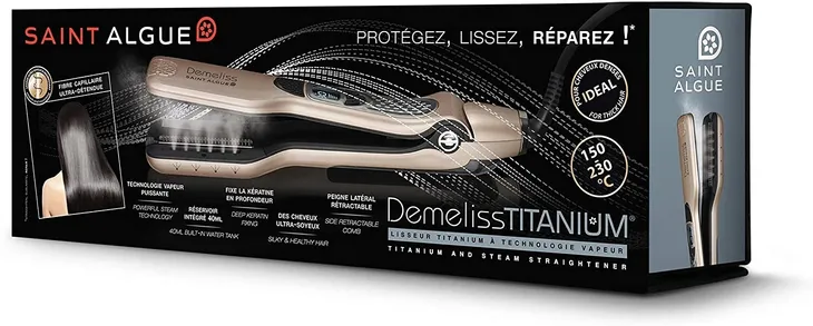 Opis produktu: Oryginalna wersja parownicy Saint Algue, zaprojektowana przez profesjonalistów: • Funkcja pary: 2 razy mocniejsza ==>Ultra luźne włókna włosów • 6 wylotów pary: odpręża nawet grube włosy. Głęboko penetrująca pielęgnacja. • TITANIUM FLOATING: natychmiastowy wzrost temperatury, wyjątkowo wytrzymały, dopasowuje się do rodzaju wygładzania. • Wbudowany zbiornik maks. 40 ml: praktyczny, największy na rynku, +25 minut nieprzerwanej pary. • Chowany grzebień boczny z ogrzewaniem: rozplątuje się podczas wygładzania. Zakres dostawy: 1 parownica parowa, 1 worek odporny na wysokie temperatury, 1 butelka na wodę, 1 instrukcja obsługi (może nie być dostępna w języku polskim)